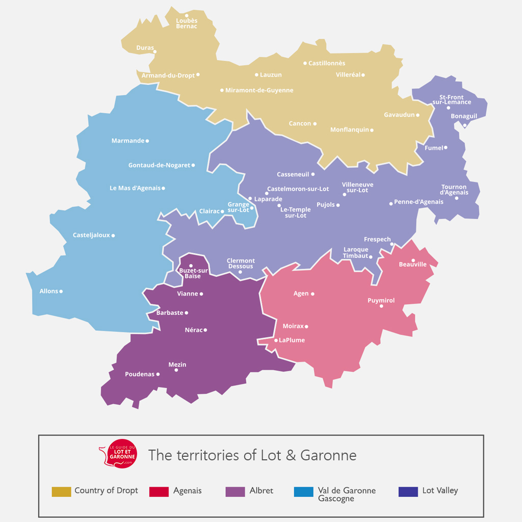 The town, located 30 km southwest of Agen, is made up of 2 districts: