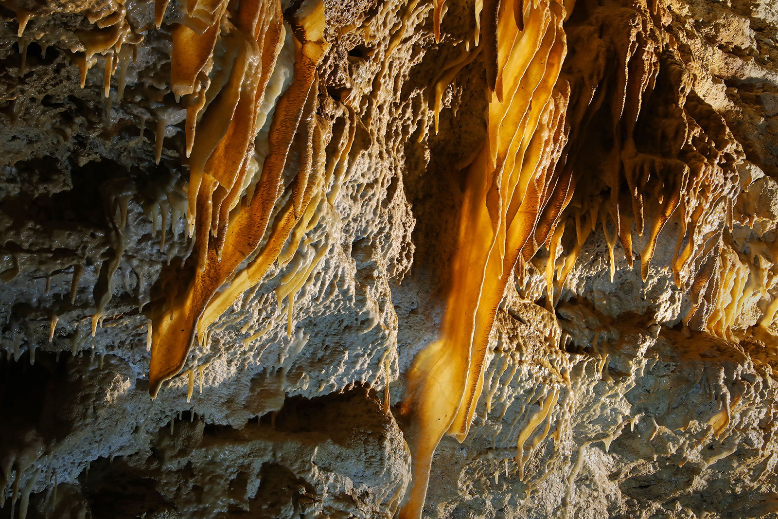 The cave is entirely natural and still active. The geology of the terrain dates back more than 25 million years, from the end of the Tertiary era, then an underground river dug a beautiful gallery that continues to adorn itself with an infinity of stalactites, stalagmites, draperies, columns and other calcite concretions.