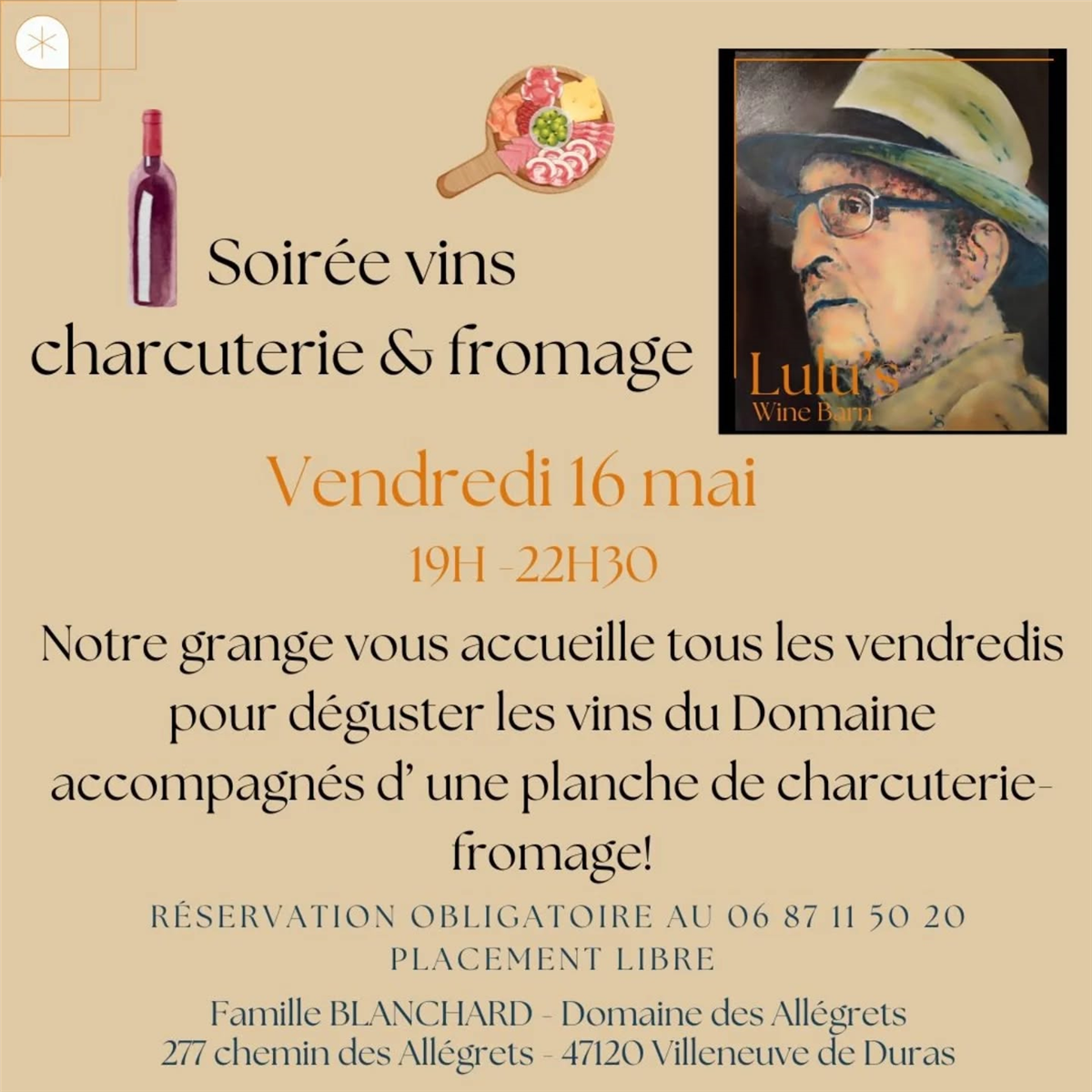Soirée vins charcuterie et fromage au Domaine des Allégrets